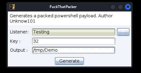 usage: FuckThatPacker.py [-h] -k KEY -p PAYLOAD [-o OUTPUT]