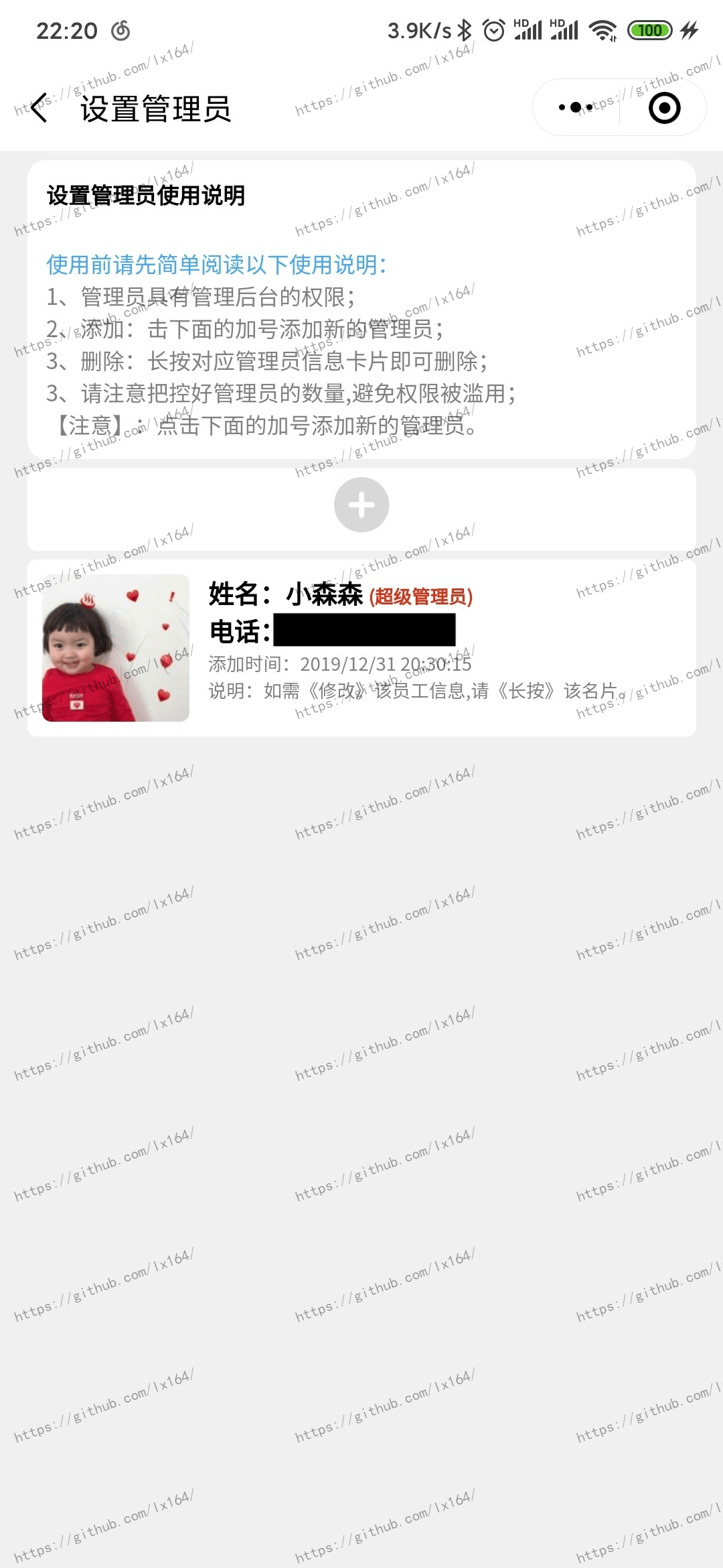 后面如果还要添加其他管理员的话,按以下的步骤添加即可:“个人中心”——>“连续点击5次头像”——>"扫码(管理员进入后台生成的二维码)";
