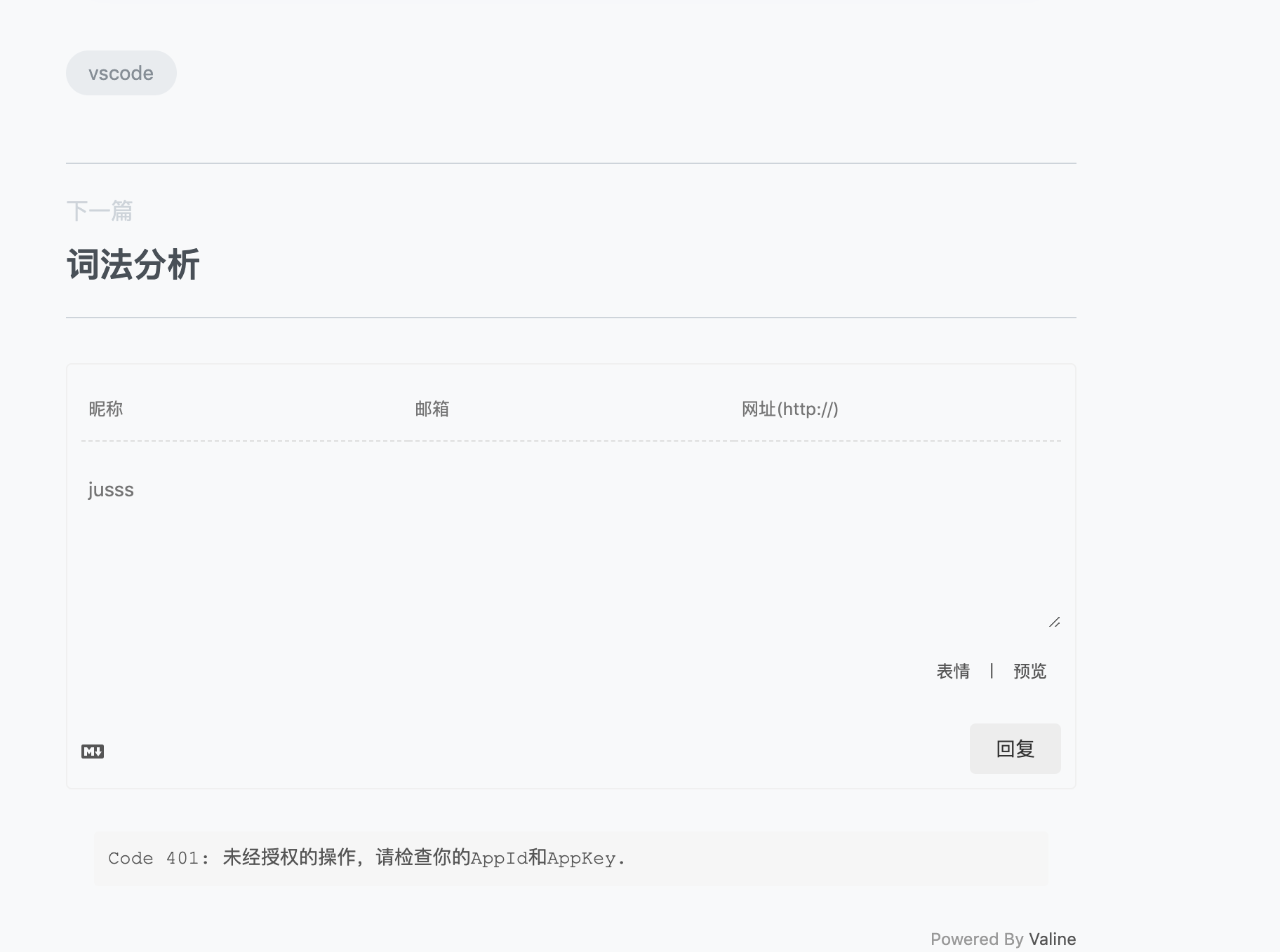 Valine 诞生于2017年8月7日,是一款基于LeanCloud的快速、简洁且高效的无后端评论系统。