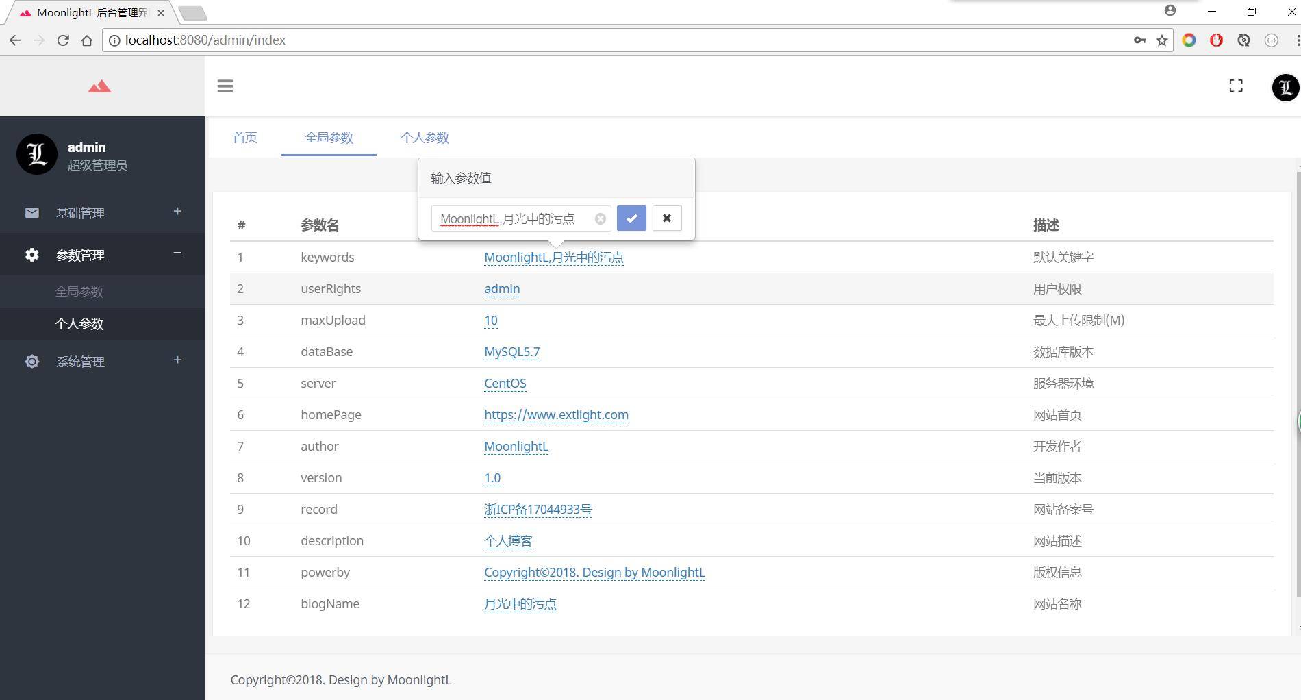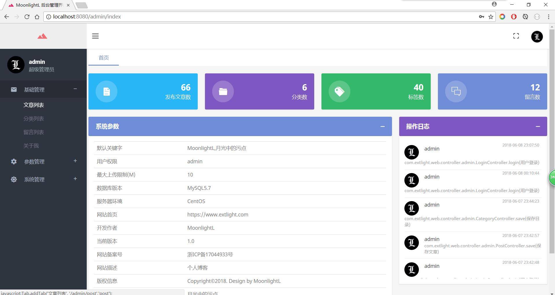 后台访问地址:http://localhost:8080/admin 用户名:admin 密码:123456