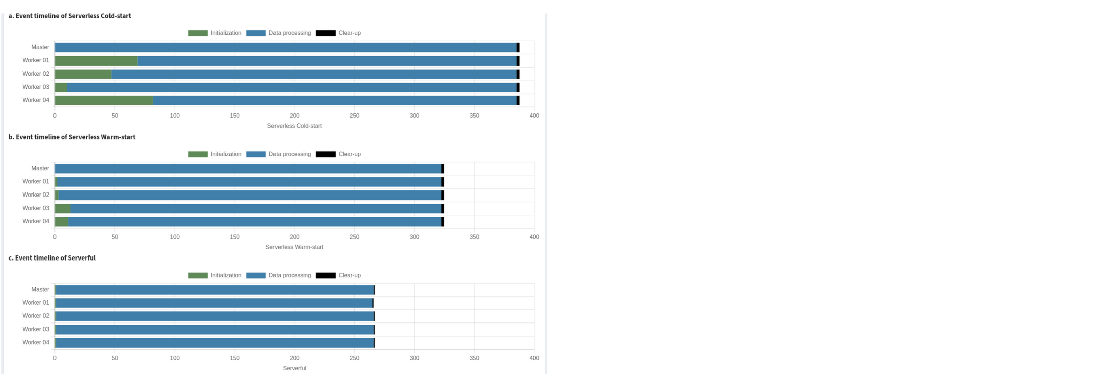 - (2) Compare the differences in the initialization, data processing, and resource reclamation phases of Spark applications when running in serverless versus serverful environments.