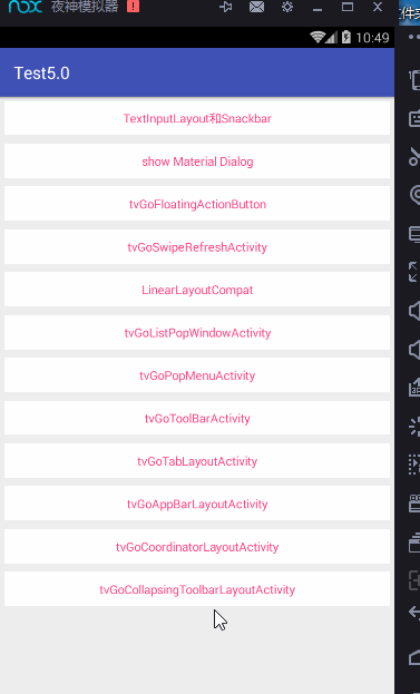 特别注意的是要使用NoActionBar的主题,且AppBarLayout的布局超过手机屏幕的时候,滑动也是有问题的。