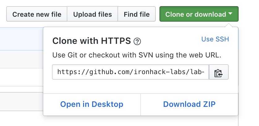 • Click on the button "Clone or download" and a window will appear: