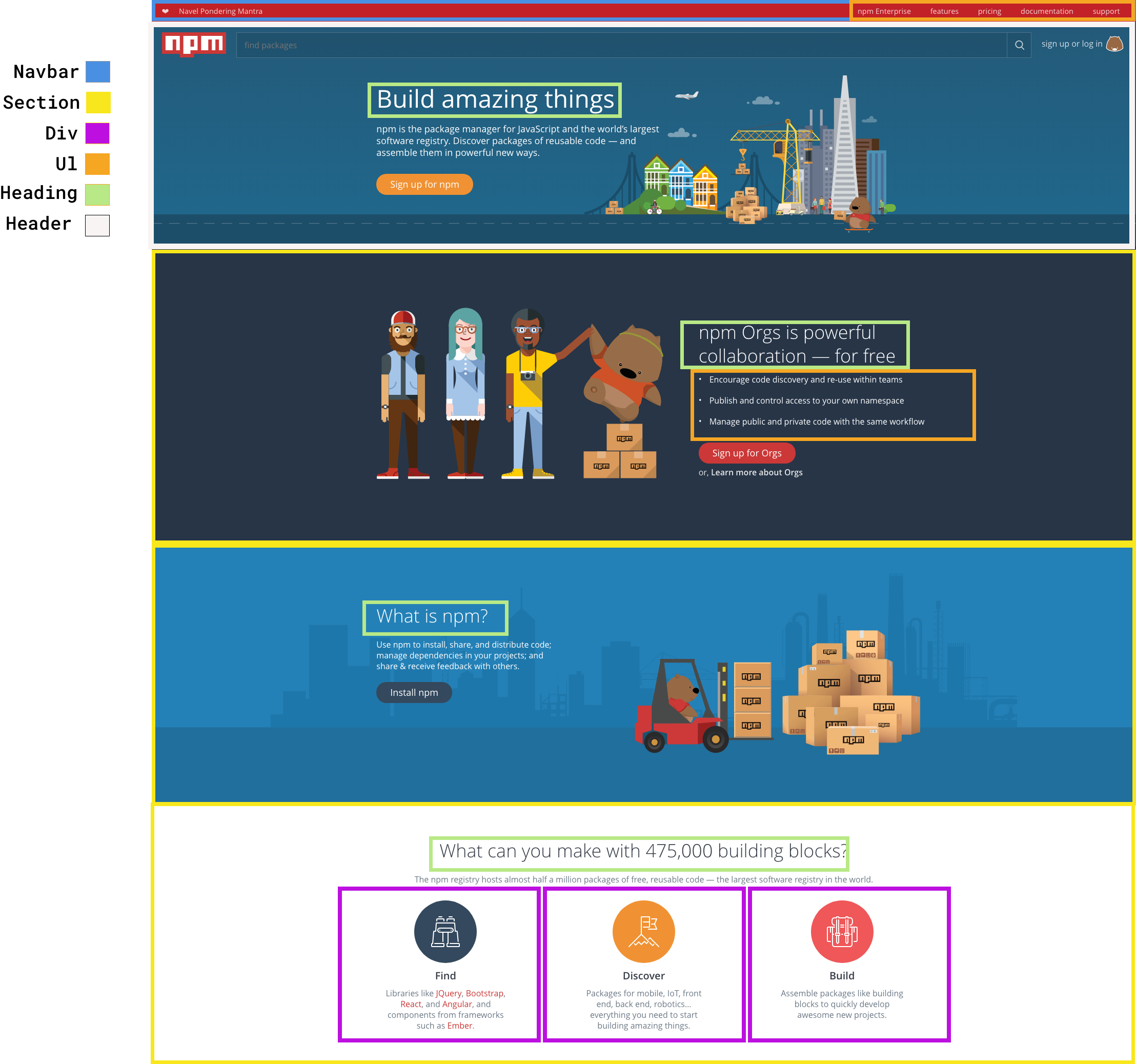 In this exercise, you've built a clone of a piece of the npm home page. This site is very complexed so if you managed to make it look anything like the original, good job! πŸ†