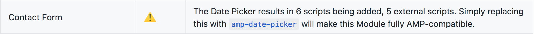 The Contact Form block's date picker enqueues several scripts, which causes the block to break in AMP environments.