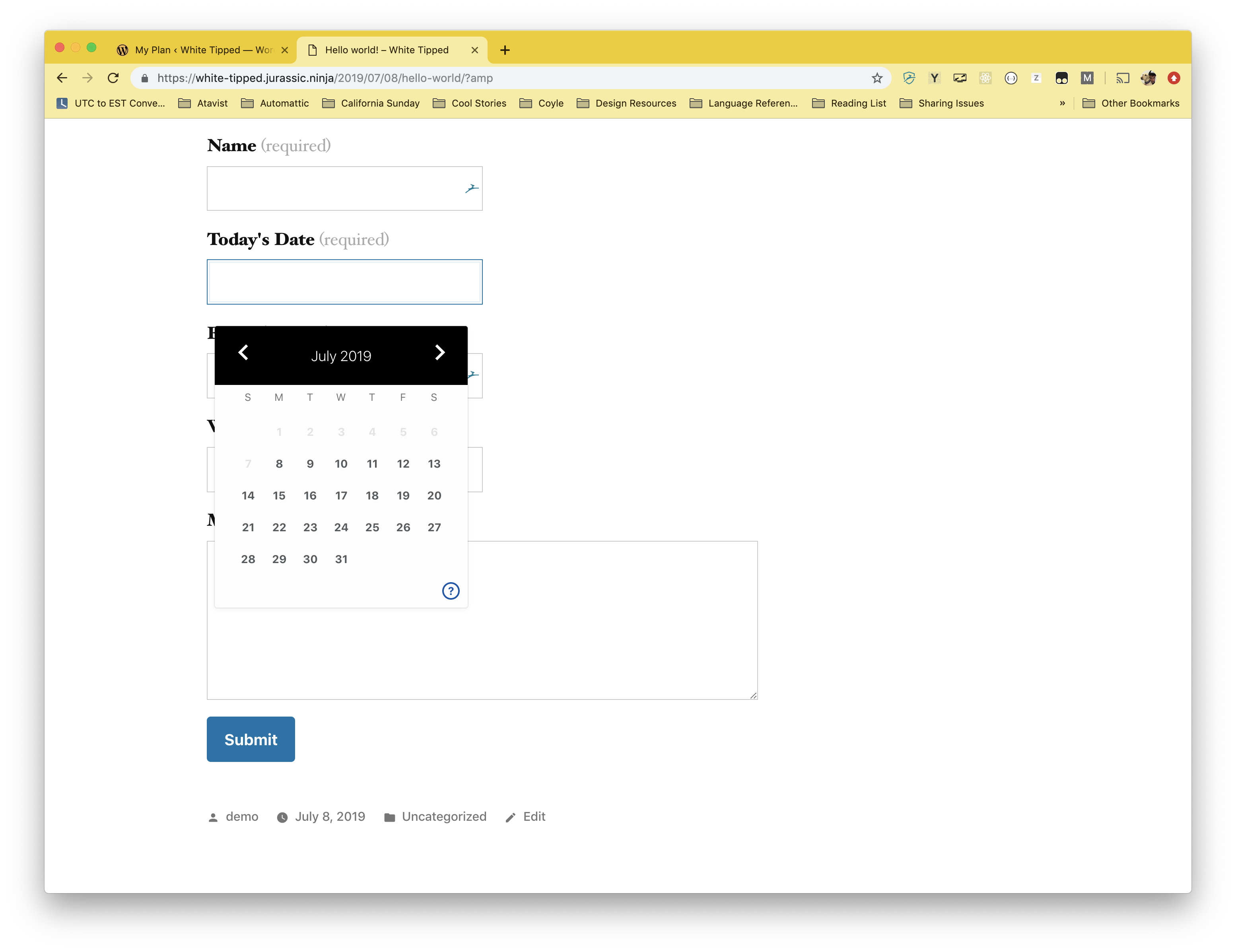 amp-date-pickerelement (https://amp.dev/documentation/components/amp-date-picker) making the Contact Form block fully AMP compatible.Testing instructions: