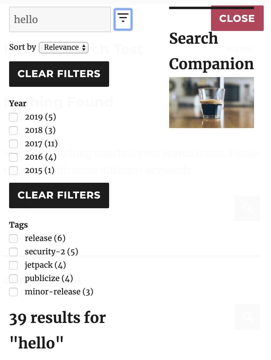 600px.600px; ensure that the filters in the search results column have been hidden.Proposed changelog entry for your changes: