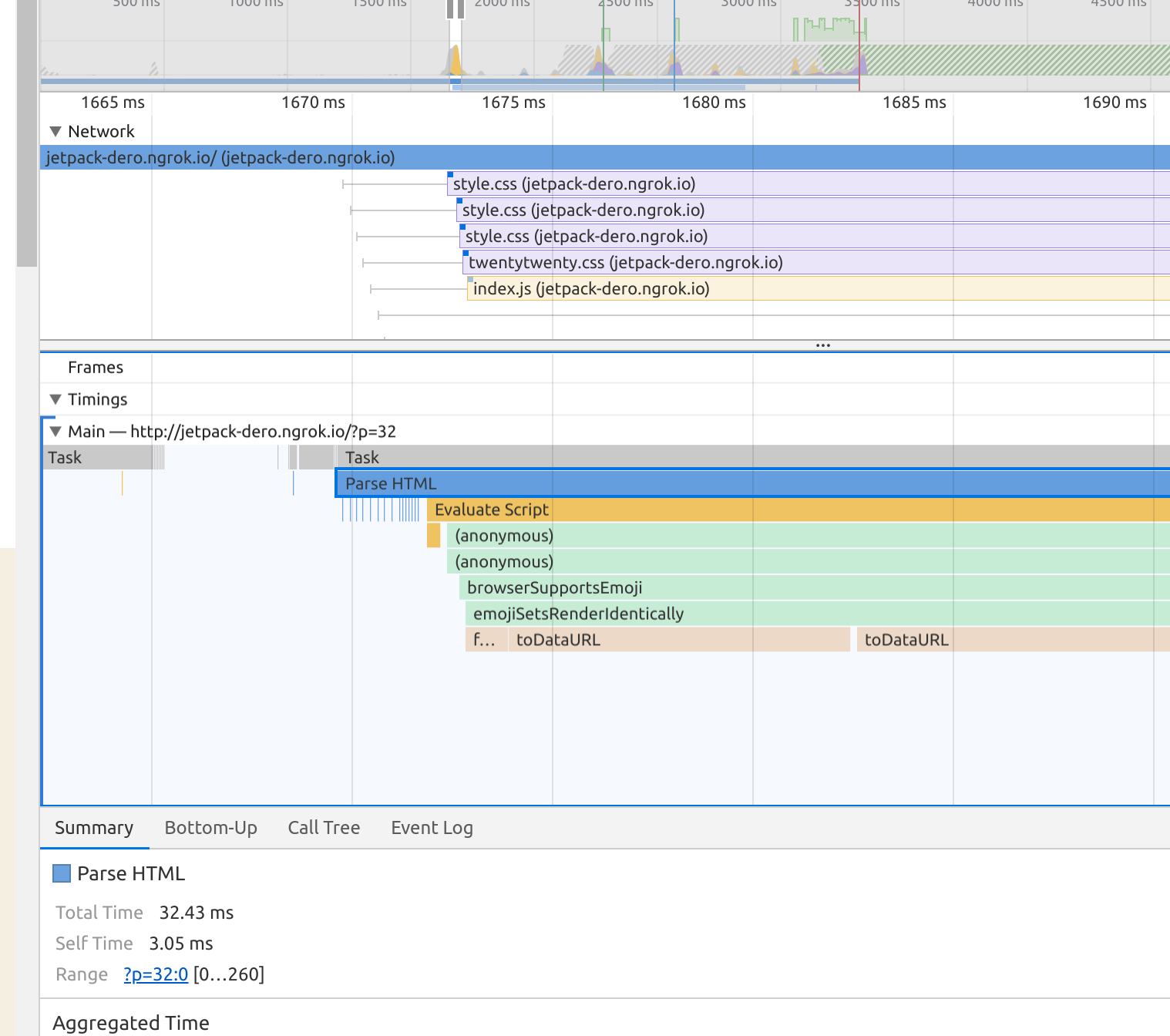 Performance impact of moving scripts to footerHi @josephscott, Like you mentioned, the performance benefit of only moving the scripts to the footer looks small. In 10 trials, the average time to First Contentful Paint was 3.15 with the scripts moved to the footer, as opposed to 3.4 with them above the footer. But most of that difference is from outliers. The most common case is that there is no difference. Steps to reproduce