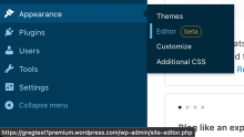 Appearance->Editorlinks to https://wordpress.com/site-editor/myatsite.wpcomstaging.com.Appearance->Editorlinks to https://wordpress.com/site-editor/myatsite.wpcomstaging.com.With Gutenberg 13.7.3