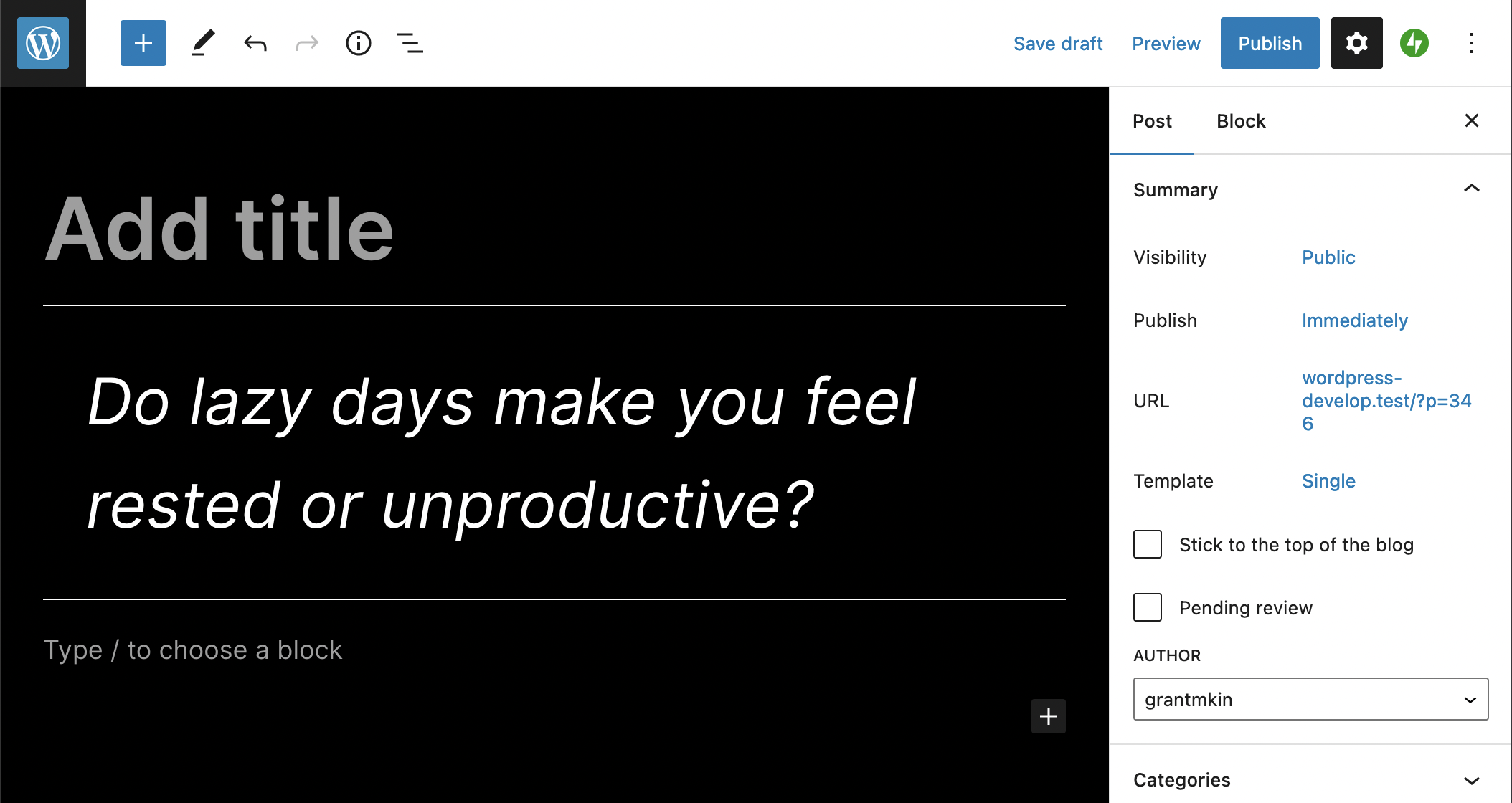 One thing I noticed, if I were to start a post, then save it as a draft and then come back to it, I'd no longer see the writing prompt. I don't think it's worth handling that case specially but just something I noticed. Appart from that I just had very minor nit picks.