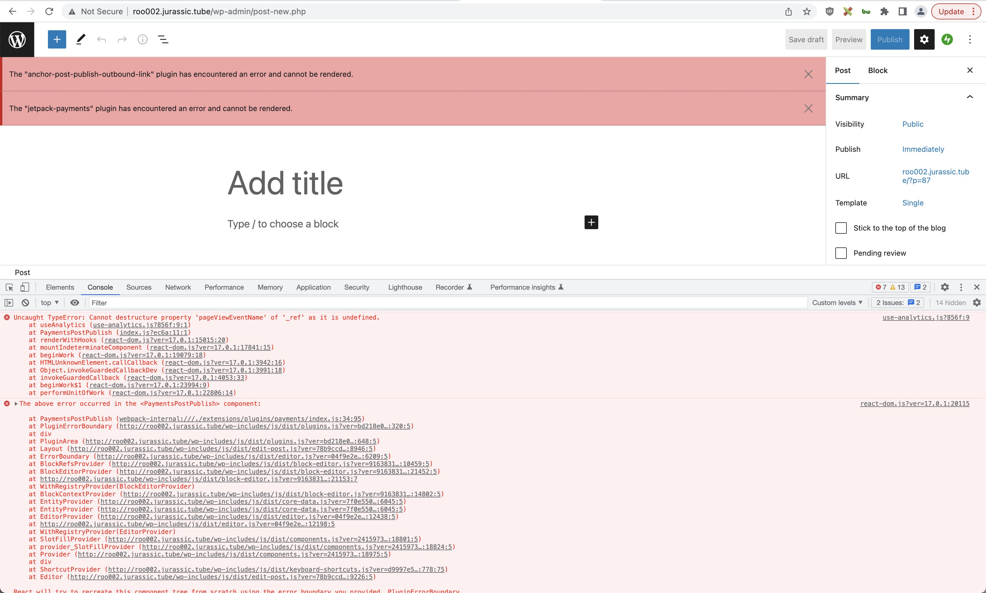 add_filter( 'jetpack_block_editor_enable_upgrade_nudge', '__return_true' );to a functionality plugin.localStorage.setItem( 'debug', 'dops:analytics*' );. Refresh the page for good measure.