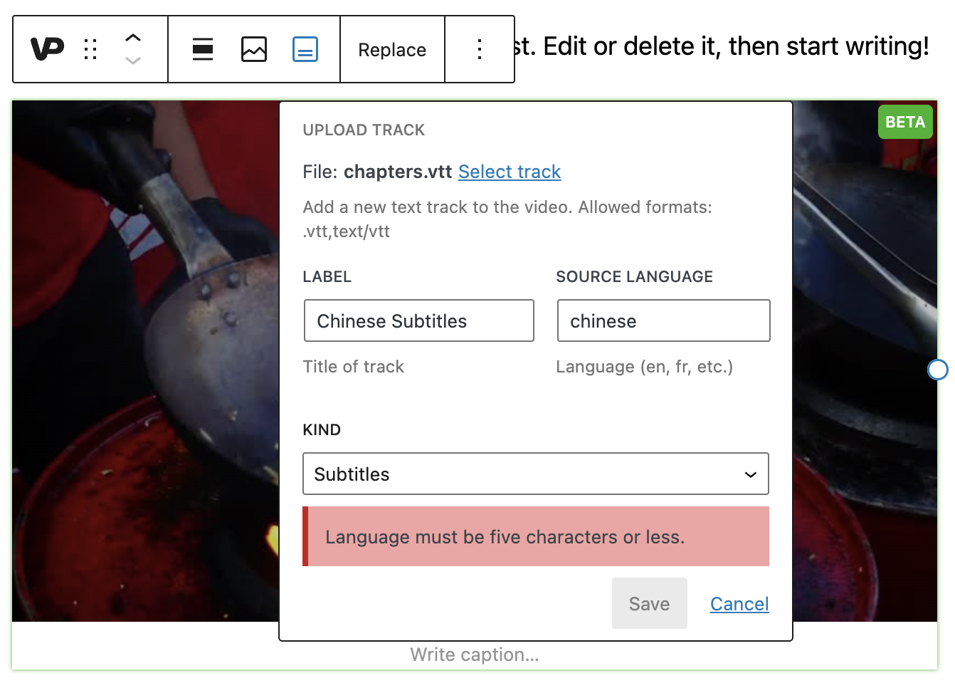 | __( 'Language must be five characters or less.', 'jetpack-videopress-pkg' ) |