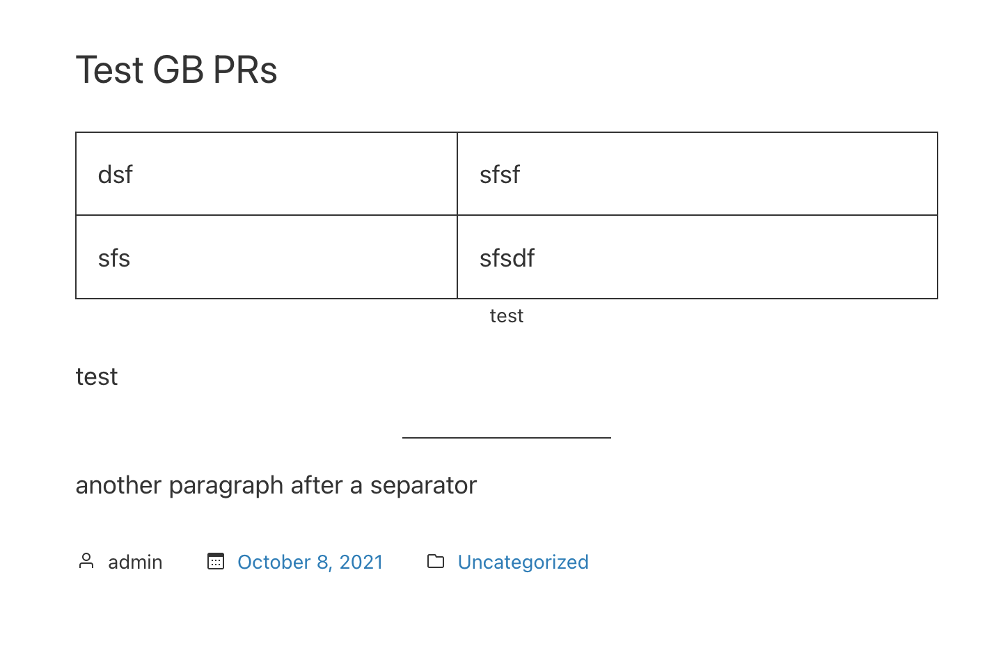 Check that the table and separator blocks look evenly separated from other blocks: