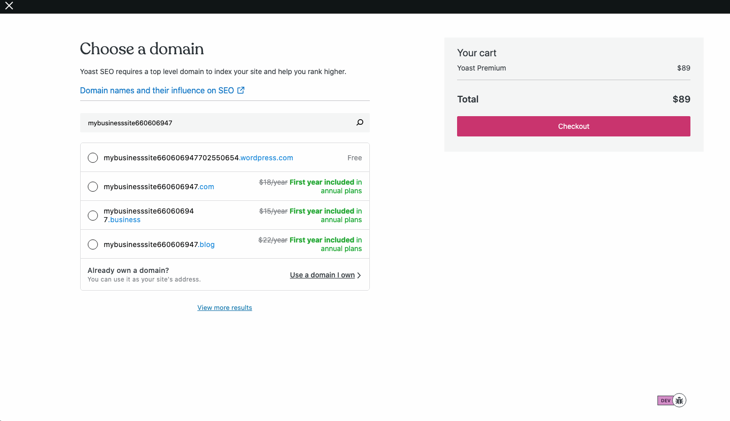 On this page, the domain picker is from Gutenboarding, and the "Your Cart" component is very similar to what we have in Checkout: