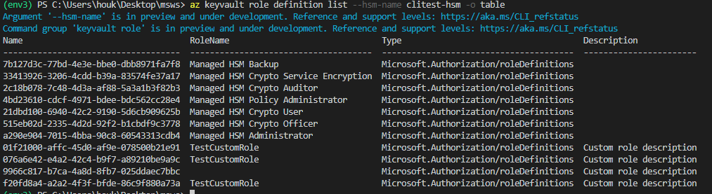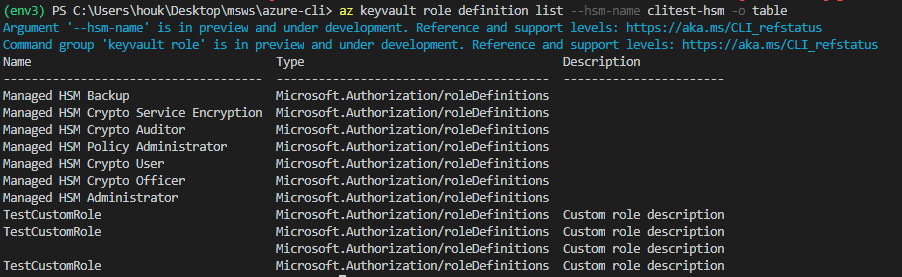 az keyvault role definition list, so that users won't be confused by the two names.previously