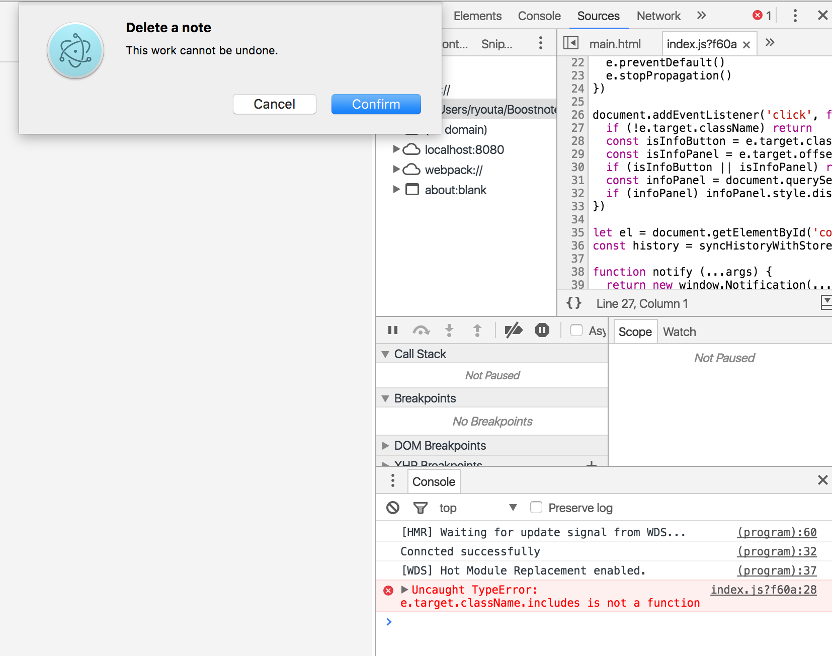 cancelbutton ondelete dialog box.Although it causes a bug, the application works fine.