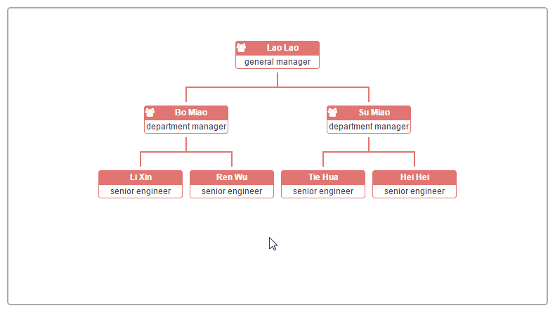 { 'nodeTitlePro': 'Bo Miao', 'nodeContentPro': 'department manager', 'relationship': '110' },