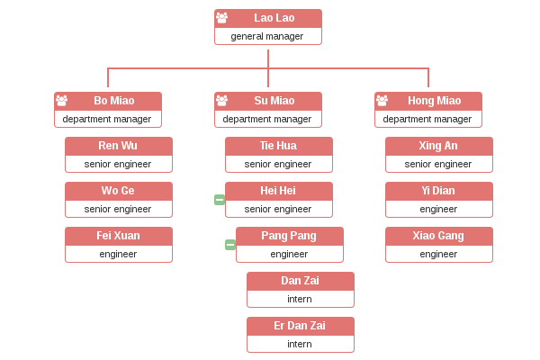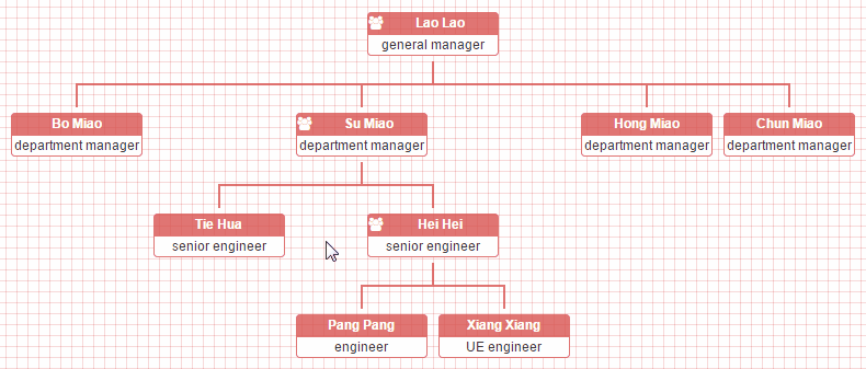 { 'nodeTitlePro': 'Su Miao', 'nodeContentPro': 'department manager', 'relationship': '111',