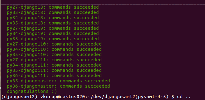 want_response_signednow defaults to True instead of False, so we have to explicitly set it toFalsefor our tests.git bisectall the changes in the pysaml release to figure it out. It only breaks python3 because defusedxml monkey patches ElementTree on Python3. djangosaml2 tries to globally set the namespace values by setting them directly on ElementTree, but that object is no longer used. I changed it to more directly set the namespaces using the pysaml API.With these changes, all unit tests pass on all python and django versions.