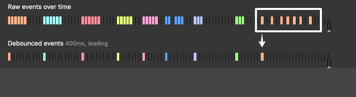 <script async src="https://static.codepen.io/assets/embed/ei.js"></script>你可以看到快速连续触发的事件是如何结合为一个的 debounce 事件呈现。但如果事件的触发间隔较大,则呈现不出 debounce 的效果。