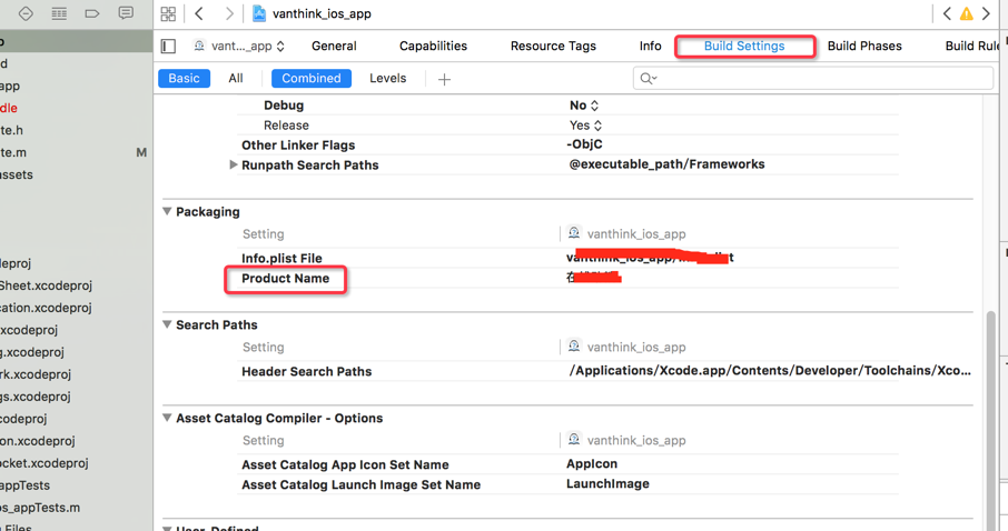 关于修改App名称的话,就相对简单了,在xcode项目中打开,点击到build settings中到Packaging中设置即可。