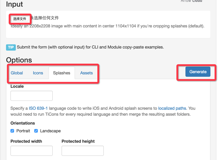 不过我们这里讲的是是讲启动画面改成我们想要的图片。同样的图片资源需要多个分辨率,推荐去TiICons进行自动处理,你可以上传一张2208 x 2208的图片,程序会自动裁剪成iphone和android所需图片大小。然后下载即可。