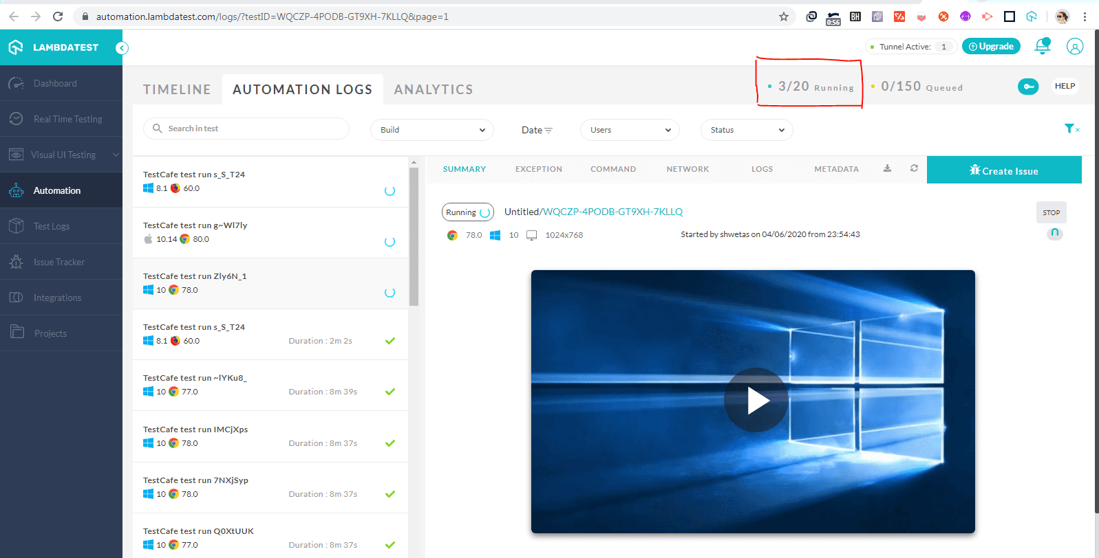 C:\Users\Admin\Desktop\vscode\testcafe-sample>testcafe -c 2 "lambdatest:Chrome @102.0:Windows 10" "test.js"
