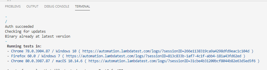 C:\Users\Admin\Desktop\vscode\testcafe-sample>testcafe "lambdatest:[email protected]:Windows 10","lambdatest:[email protected]:Windows 8.1","lambdatest:[email protected]:macOS Mojave" "test.js"