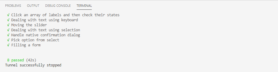 In the Demonstration,we will be creating a script to launch a web application and perform various actions on the webpage like : ‘Text typing basics','Click an array of labels and then check their states','Moving the slider',Dealing with text using keyboard','Dealing with text using selection''Handle native confirmation dialog', 'Pick option from select', 'Filling a form' on the webpage ,and will be using assertions to verify the test cases. If assert returns true, the test cases pass successfully and show up in the automation logs dashboard, else if assert returns false, the test case fails, and the errors will be displayed in the automation log.
