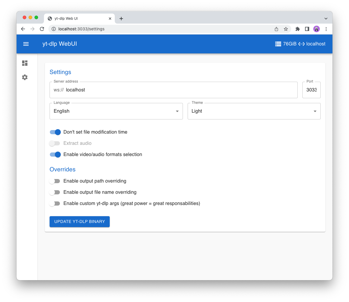 yt-dlp-webui --conf /home/user/.config/yt-dlp-webui.confUsage yt-dlp-webui: