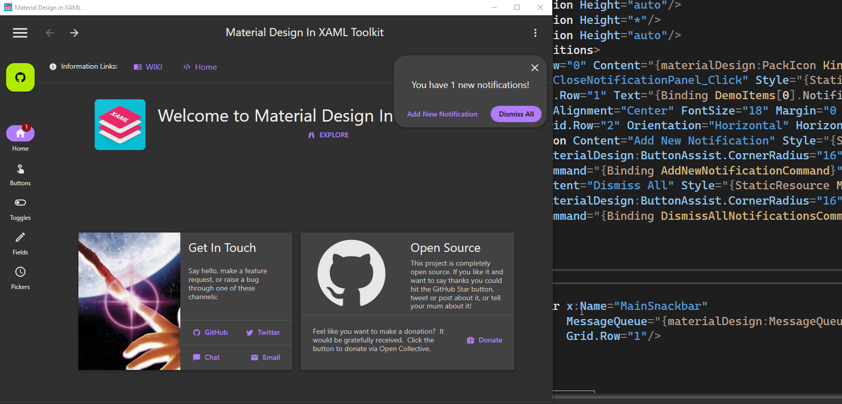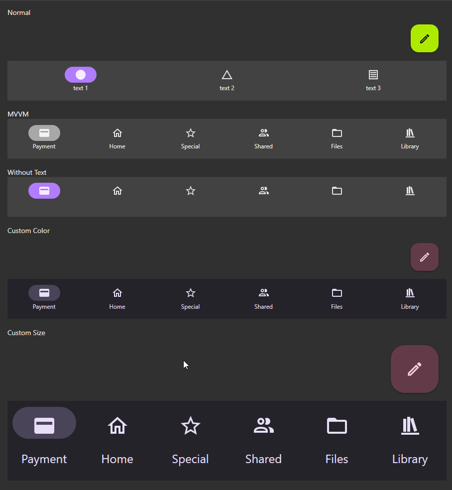 I've fixed the errors and added the badge to the navigation controls. Some changes also to the Demo App. To showcase the badge I've added a Notifications property to the DemoItem class and a little control to increase or dismiss the notifications. Also new an extended FAB and a collapse button in the drawer when in standard mode. |