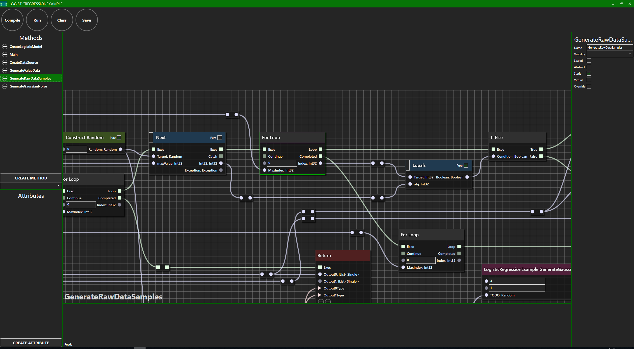 NetPrints is a visual programming language inspired by Unreal Engine 4's Blueprints which compiles into .NET binaries or alternatively C# source code. These can be used from any other .NET language (eg. C#) or used as standalone programs. Furthermore any .NET binaries (both .NET Framework and .NET Core, and ideally .NET Standard) can be referenced and used. Its goal is to support using anything that is made in C#. Furthermore it can be used directly within Visual Studio in any C# projects (experimental). Overview
