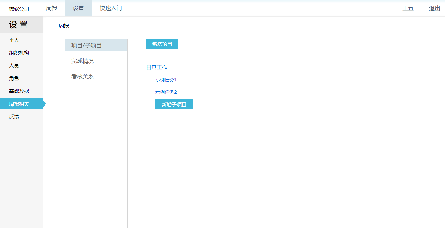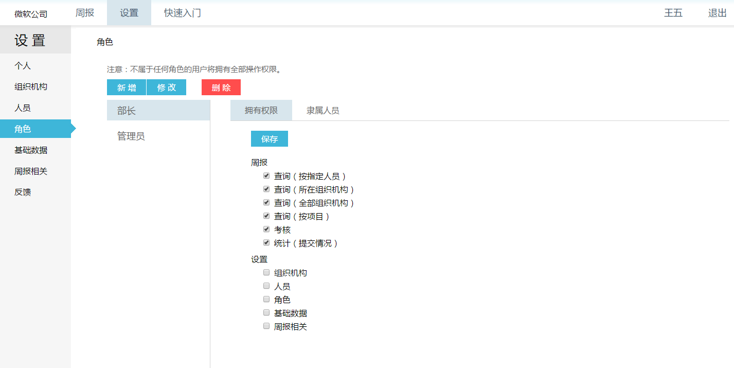 - 可以树结构的形式管理组织机构,以便周报查询中按组织机构查询。