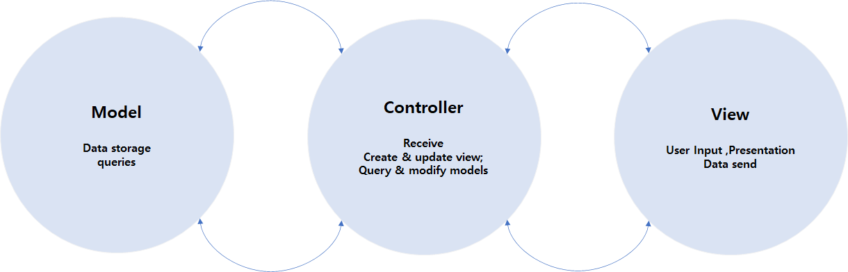 GameLog 시스템은 MVC 패턴을 사용하고 있으며, Model 에서는 데이터 저장, Controller에서 받아온 query를 통하여 데이터를 전송, 응답하며 Controller에서는 view에서 응답을 받을 수 있으며 받은 응답을 통해 model에 전달하는 query를 제어하며 model을 변경하는 역할을 맡고 있다.