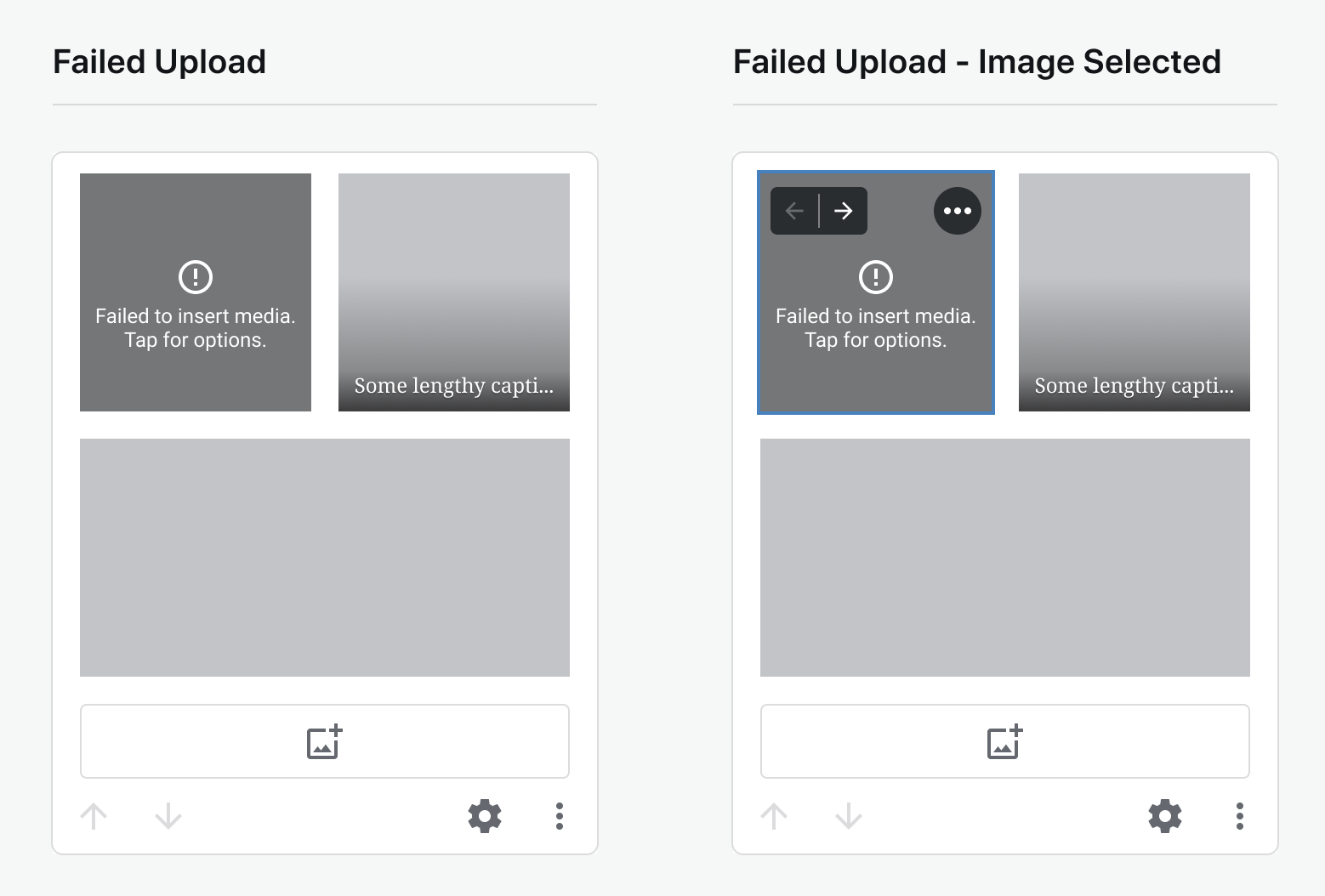 Surprising that CSS gradients aren't supported, but considering we'll eventually need to support them for various blocks (button, cover, etc.) maybe now is a good time to do a quick investigatory spike 😄 When you say you're adding a "simple transparent dark style as the caption background for now" do you mean something like this? If so, that's reasonable and can you make it I have often wondered if we might want to truncate captions so that we can avoid overflow issues like the one Pinar mentioned (and also that input area is super small), but I'm not sure if it needs to be attacked during this specific iteration. Just for giggles I was sketching out ideas for a more scalable text input flow, which would be useful on a variety of cases – that looks something like this: