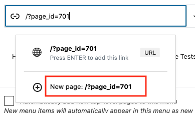 Thanks for this PR, @adamziel. Things are looking good! There's just a couple design issues I'm noticing. BordersThe border to the far right of the LinkControl looks to be doubled. There is also an over-extending of the dividers happening. They extend too far below the LinkControl border. Page ID duplication?It looks like I have this page ID already created because it's linked to from my menu. But the dropdown says that I can create a new page with that same ID? Is that even possible? Page IDs are not user friendlyI understand the reasoning behind using a page ID, but as a user, I have no idea what they mean. And I definitely can't keep an ID associated with a particular page in mind. For example, I have no idea what ID my About page is, but I know I have an About page. In the screenshot below, I just see a bunch of IDs and I don't know what they are. Dropdown alignmentRight now the dropdown appears centered under the input field. I'd like to see these both aligned with each other on the left. Remove linkLooking at this, I half-expect the "Remove link" option to remove the entire Link block from the menu. That didn't happen. It just removed the link URL from the input field. Can we just use a simple |