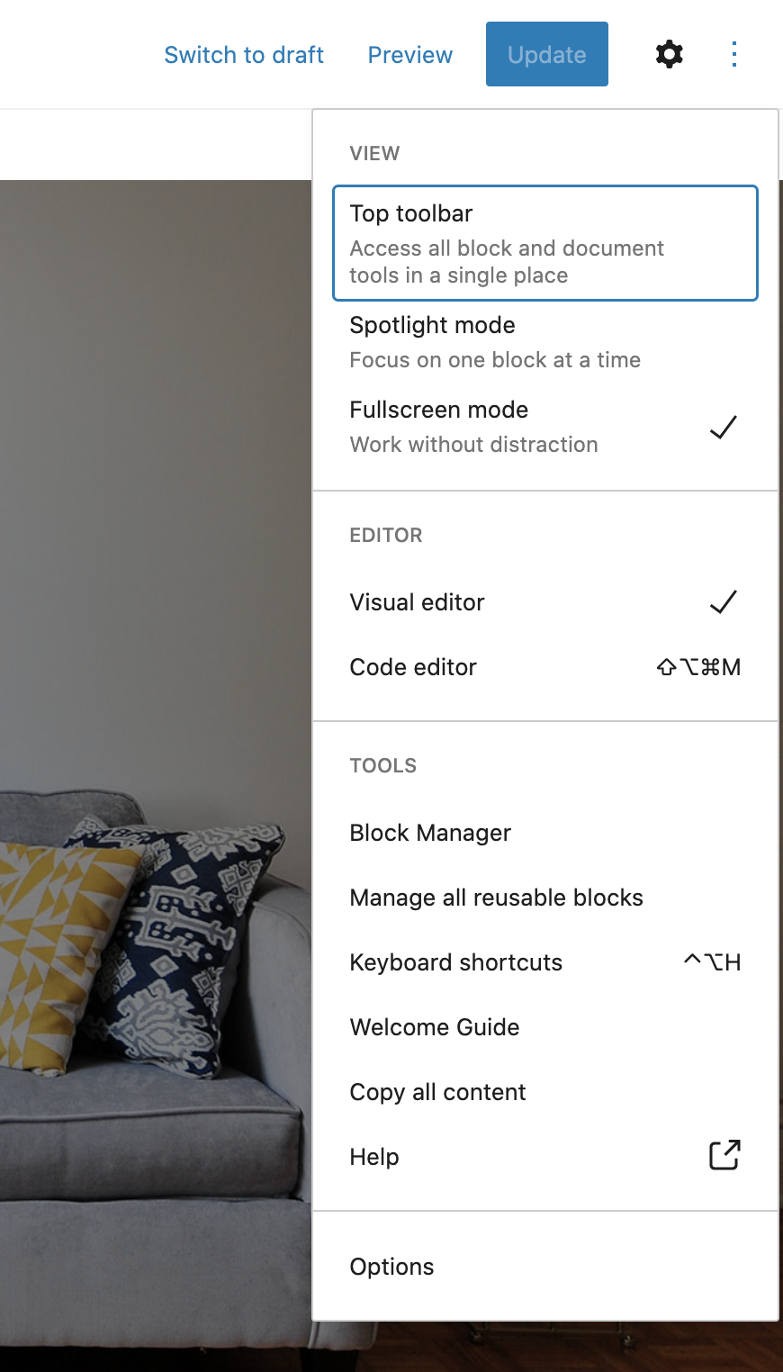 Open gutenberg editor for a page.