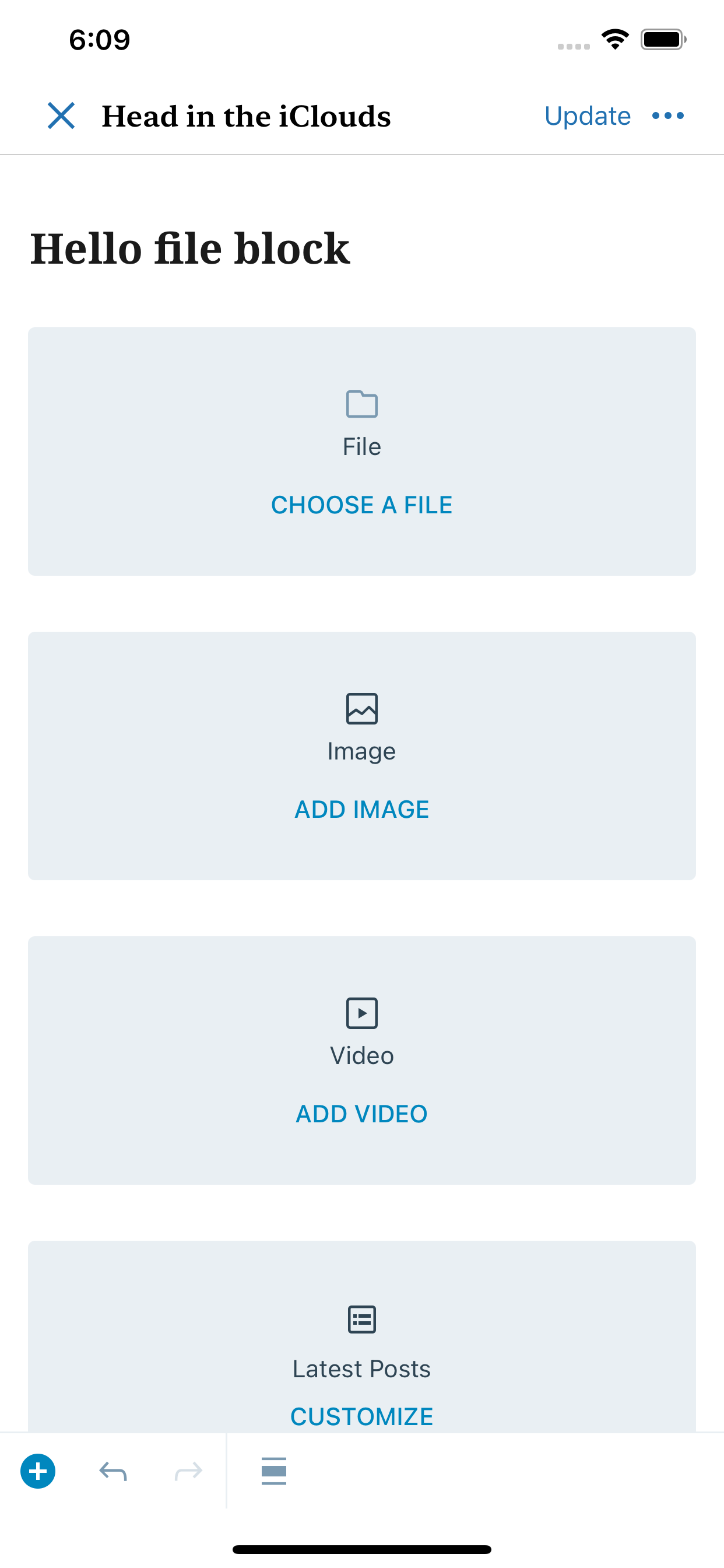 - Add a File block.