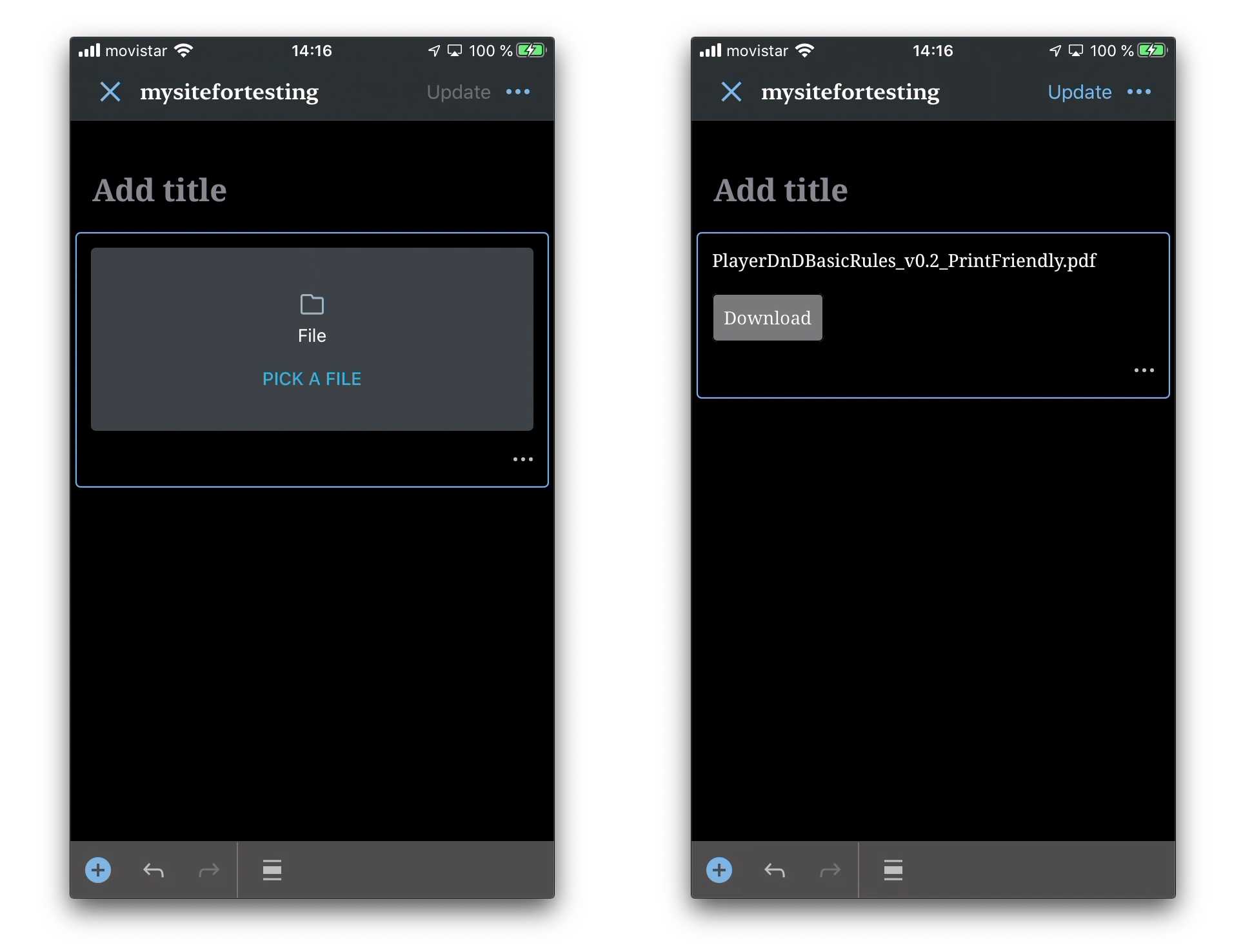 Uploading a file from WPiOS is working well ✅ I have some comments and questions:
