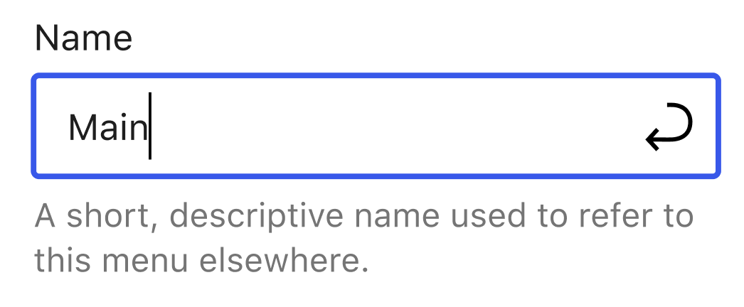 In the designs, the menu name input had its own submit button; This seems to be missing from this PR. Currently, its not obvious that I have to click the main Save button to actually update the menu name. The PR also seems to have the help text too close to the input — I'd expect a little more space between them. |
