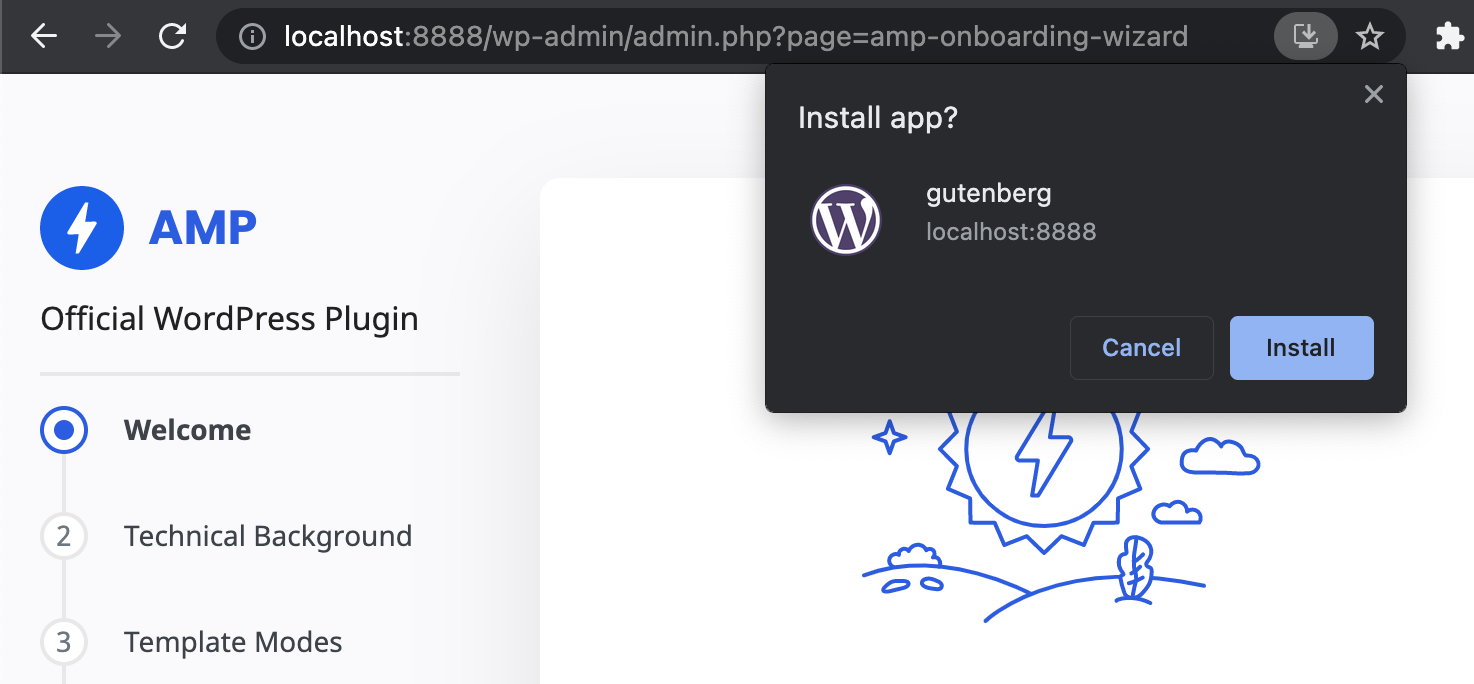 Install the AMP plugin and use the onboarding wizard. There will be no admin bar. The web app should be installable and have the right background color.