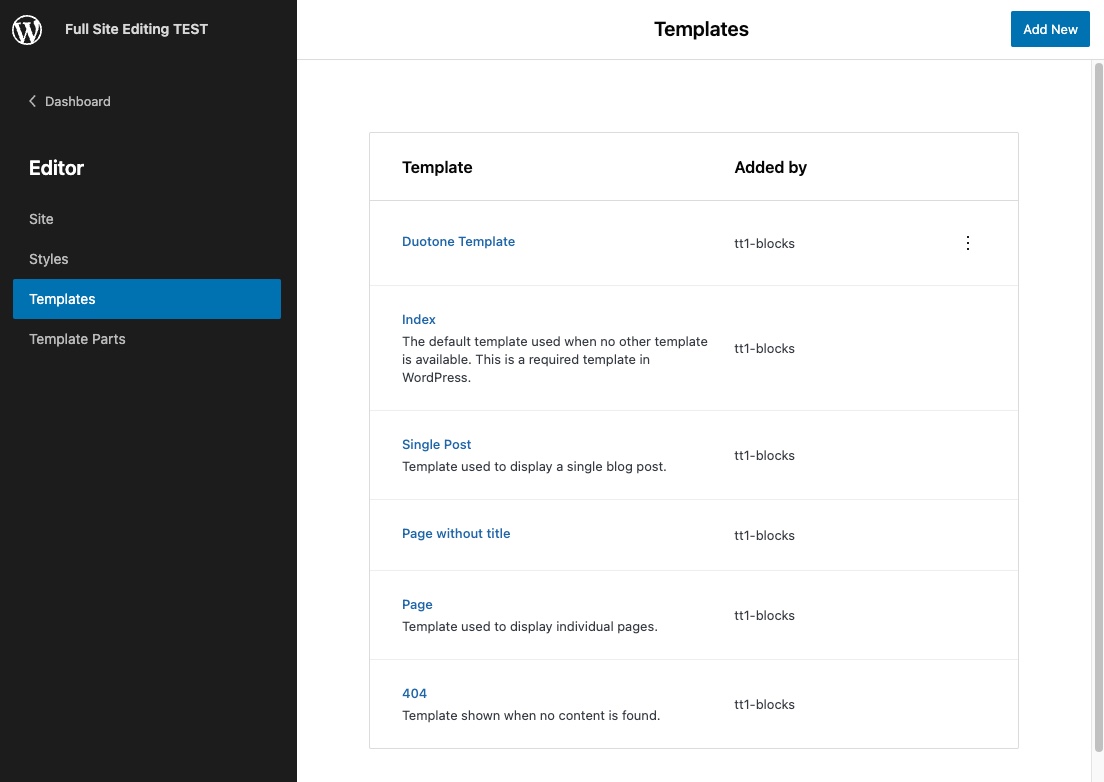 I am going through and reporting what I notice. I am brainstorming. (I have gone through the initial post in this PR and not yet looked at the various comments following.) I have downloaded and activated the Gutenberg PR build using this approach. https://make.wordpress.org/design/2021/03/03/testing-a-gutenberg-pull-request-pr/ Activated TT1. Went to Appearance -> Editor (Beta). The black left menu area is very wide. Much wider than it needs to be with the items present. I assume if that Site Title is very long that after a certain amount of characters we will see .... (truncation) Nice and clear selections. Editor (good and obvious title) Templates screen. In the Templates screen. The question comes up while in the Templates screen. What is my best guess as to what I can do in this screen? Clicking the name of a template opens the template in the Site Editor. Some templates have descriptions and some I have earlier created does not. I wonder how I create a description. Conclusion: |