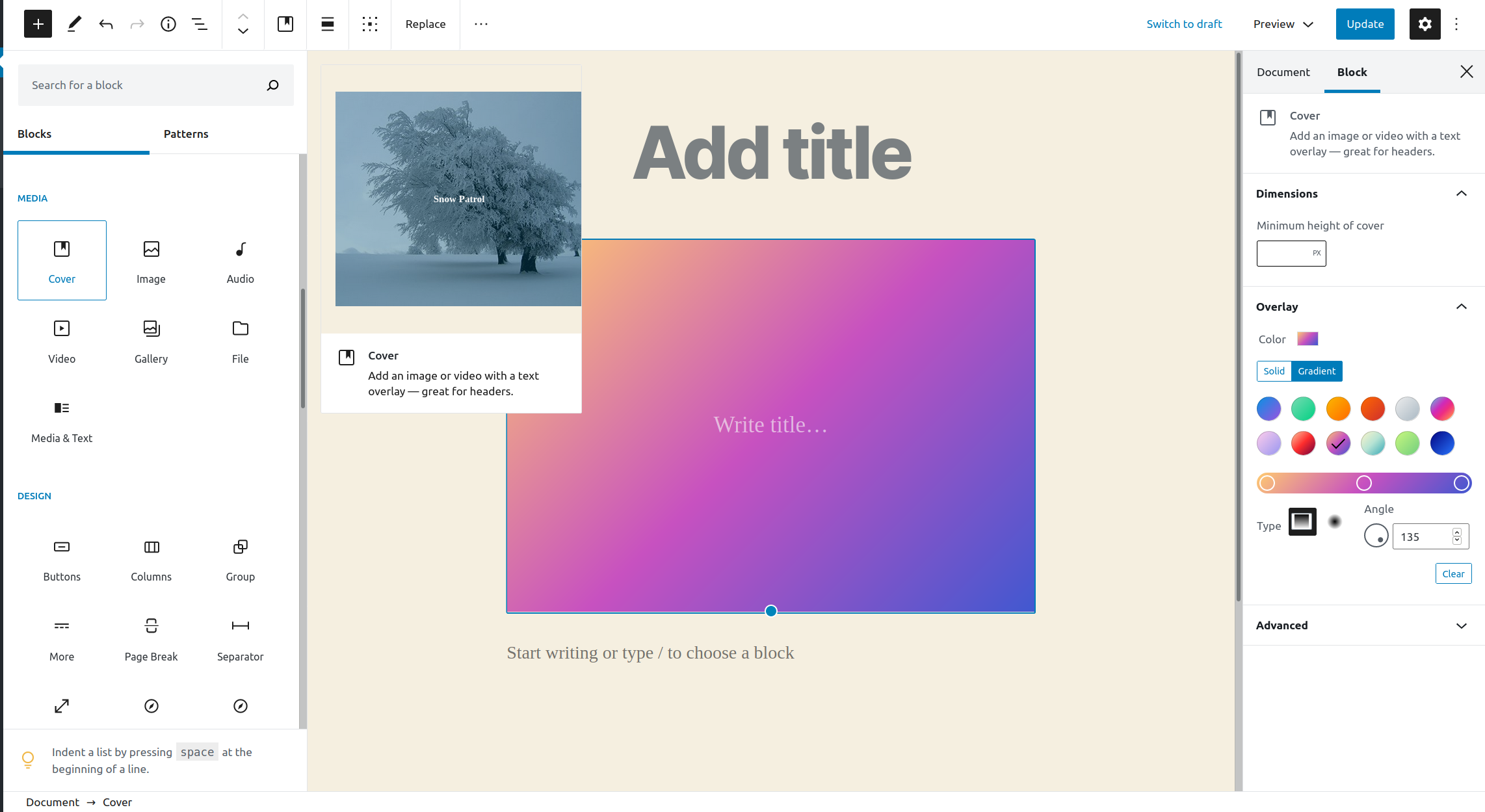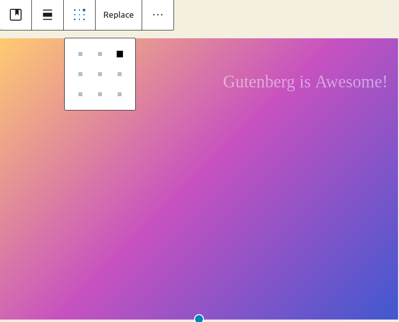 The alignment matrix control allows users to quickly adjust inner block alignment; this is in contrast to the alignment toolbar that aligns the frame block.