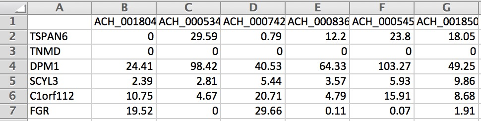 compass --data expression.txt --num-processes 10Below is an example of the formatting for gene expression (We only show a small portion of the matrix):