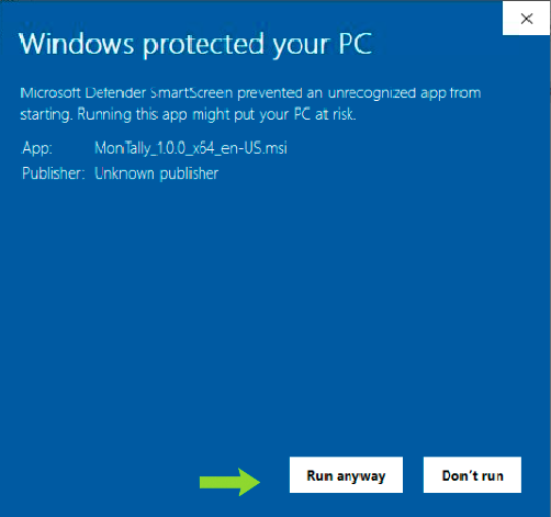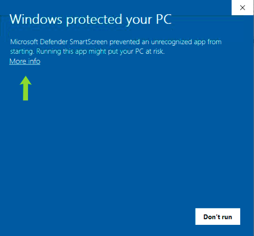 When running the installer of FlightMetrics application, you may encounter a message indicating that the application is not signed. This is a common occurrence for unsigned software. Follow these steps to proceed securely: