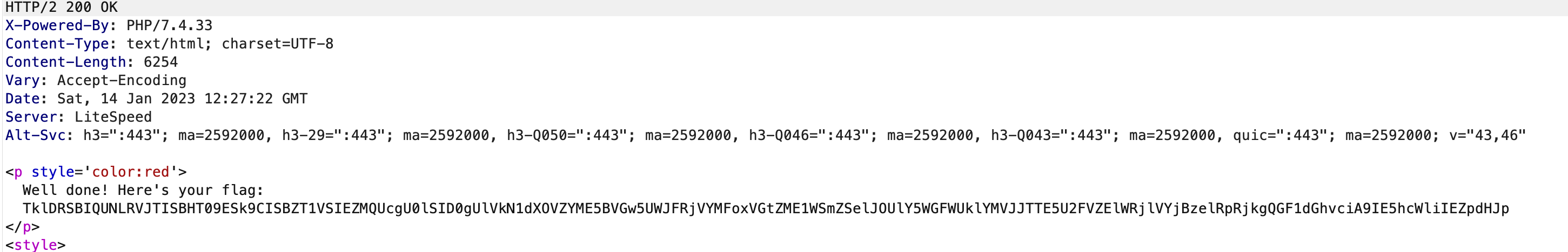 Send the request and we get the flag which is in base64: