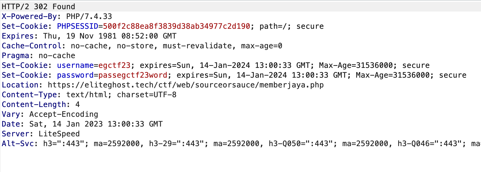 Test the credential found at the login page and we will be redirected to different page sourceorsauce/memberjaya.php which return to a 404 page:
