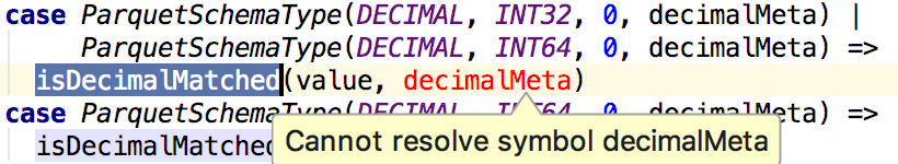 | case ParquetSchemaType(DECIMAL, INT32, 0, decimalMeta) => |