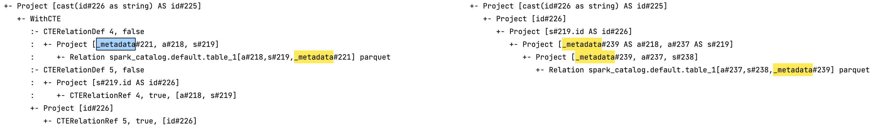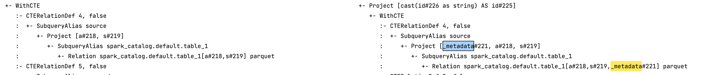 : +- Relation spark_catalog.default.table_1[a#218,s#219,_metadata#221] parquet