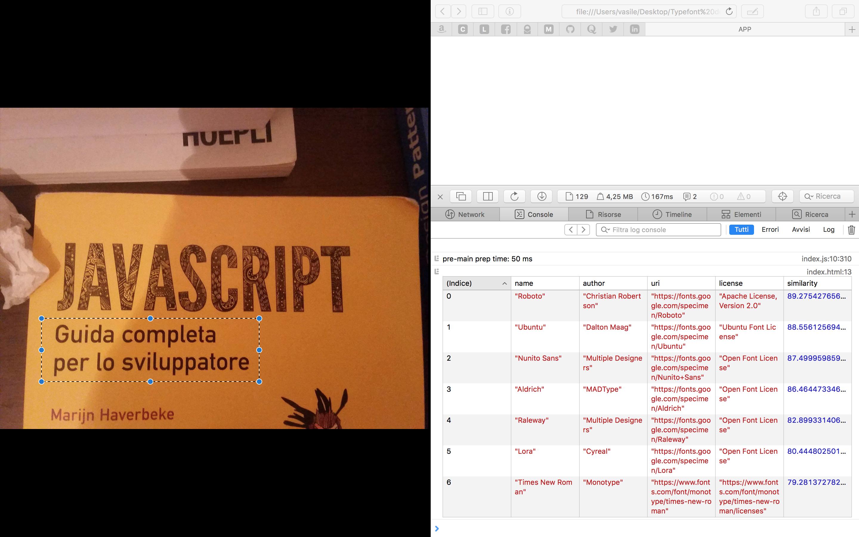 of the image. The function returns a Promise that when is resolved returns an array containing each font ordered in descending order (considering the similarity percentage).